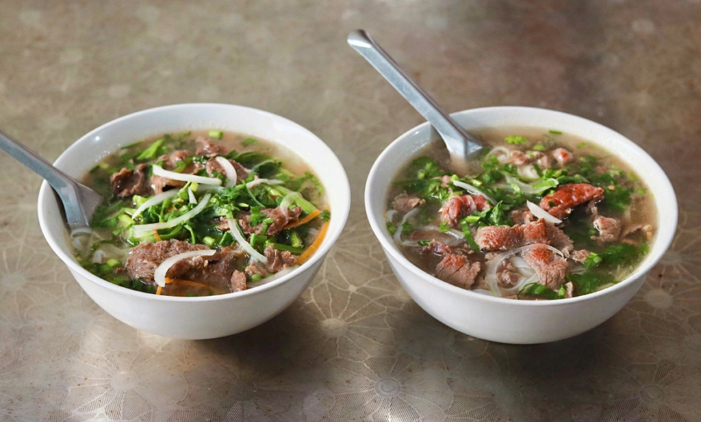 At the top of the list is Pho Bo, the most famous and popular version of Pho, consisting of pho noodles served with rare or well-done beef. The broth is made from beef bones, marrow bones, oxtail with added star anise and cinnamon. Toppings of Pho Bo include thinly sliced beef brisket (brisket), beef ribs, beef tenderloin, beef intestines, rare flank, beef tendon. Locals like to eat Pho with fried dough sticks and iced tea.