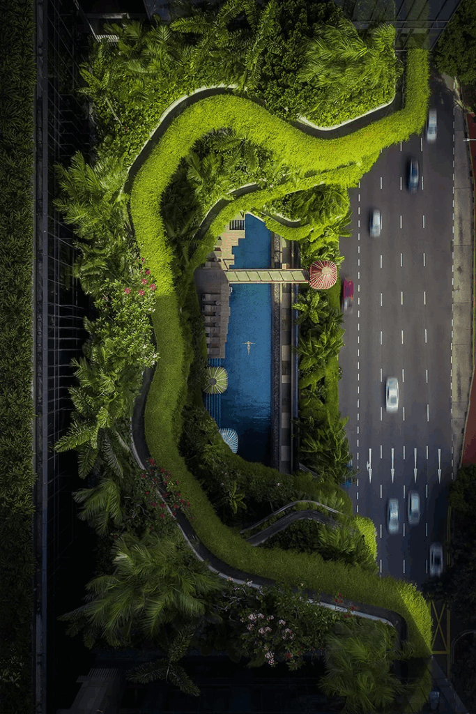 Khách sạn Park Royal Pickering Street của Singapore, một địa điểm thu hút khách du lịch với kiến trúc đặc biệt và những khu vườn xanh tươi, là một địa điểm check in nổi tiếng và khó quên. Được thiết kế với ý tưởng “khách sạn trong vườn”, tòa nhà hòa hợp liền mạch với cảnh quan đô thị của Singapore, tự hào với thảm thực vật xanh tươi, rủ bóng trên mọi tầng của tòa nhà. Với những sân hiên ngoài trời phủ đầy cây nhiệt đới đầy màu sắc, khách sạn cung cấp những địa điểm chụp ảnh độc đáo, ghi lại sự hài hòa của kiến trúc và thiên nhiên. Đối với các du khách yêu thích thiết kế xanh bền vững của Singapore, Park Royal Pickering Street là địa điểm check in trong mơ nhờ các hồ bơi trong xanh, lối đi trong vườn và các đường nét kết cấu nổi bật.