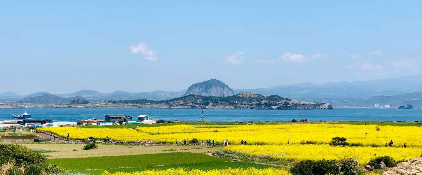 Được mệnh danh là “Hawaii của Hàn Quốc”, lá mùa thu ở đảo Jeju thường đến muộn nhưng sẽ đến sớm với vô vàn loài hoa và quýt thu hoạch, tạo nên những lớp màu sắc mùa thu độc đáo. Hallasan là nơi tuyệt vời nhất để ngắm lá mùa thu ở Jeju. Ngay cả khi không leo hết đỉnh, bạn vẫn sẽ ngạc nhiên trước vẻ đẹp lộng lẫy của mùa thu quanh chân núi, nơi lá và tán cây bùng nổ trong ngọn lửa màu hồng ngọc và vàng cùng những quả quýt treo đang chờ thu hoạch. Hãy tham gia cùng những người hái cam và thưởng thức những múi cam ngọt ngào tươi mát. Một màu sắc khác mà bạn có thể tìm thấy ở đây là cỏ bạc, với những lớp màu xám đến nâu dưới ánh mặt trời, lấp đầy miệng núi lửa và đung đưa trong gió. Và cỏ muhly, với màu hồng tươi, tạo thêm nét độc đáo cho chuyến tham quan mùa thu của bạn.