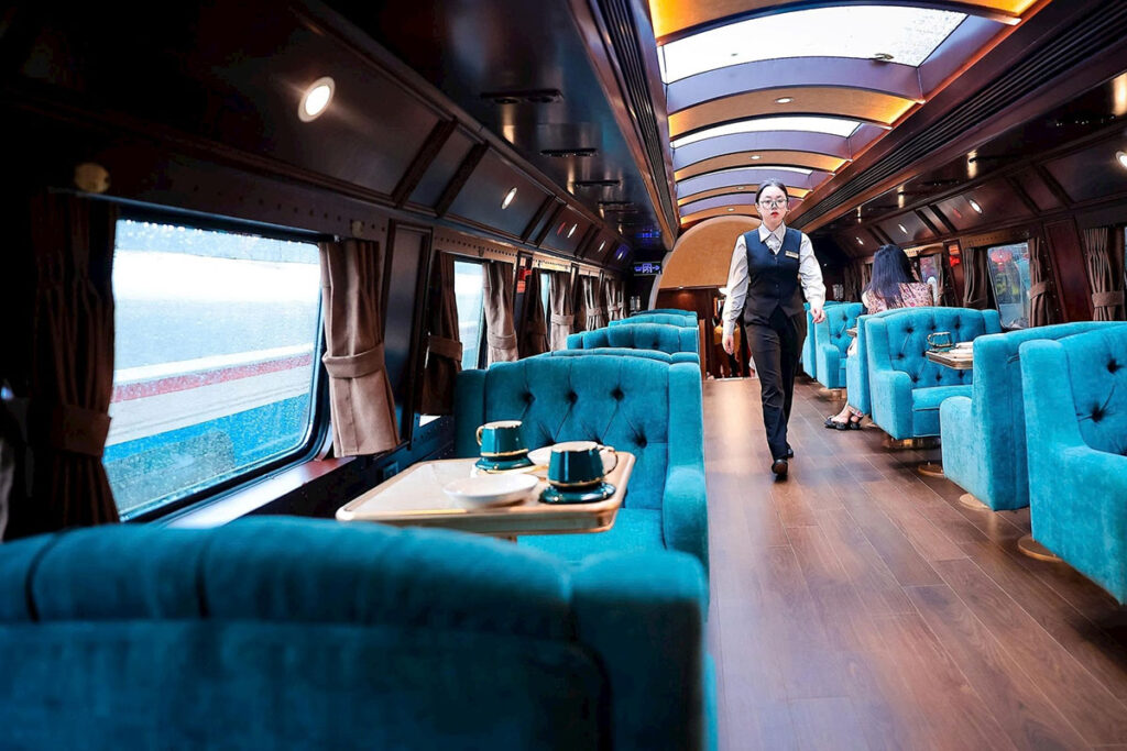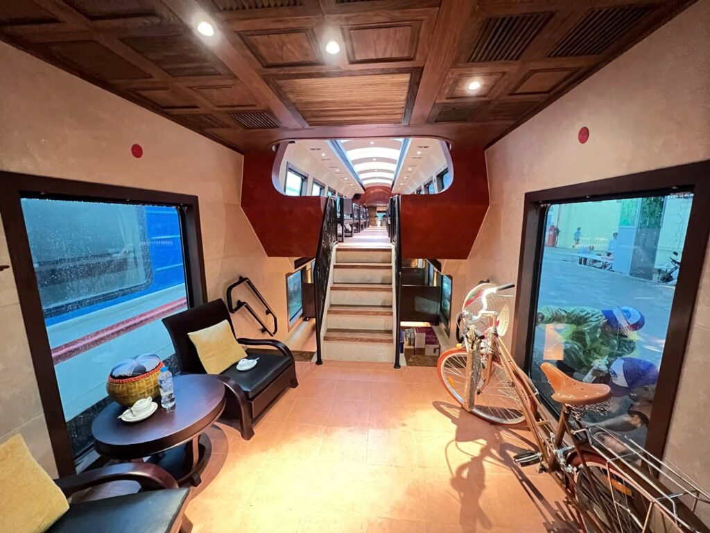 There are five luxuriously designed double-decker seating carriages and two carriages reserved for check-in. The carriages’ interiors have different themes and from 40 to 60 seats each.