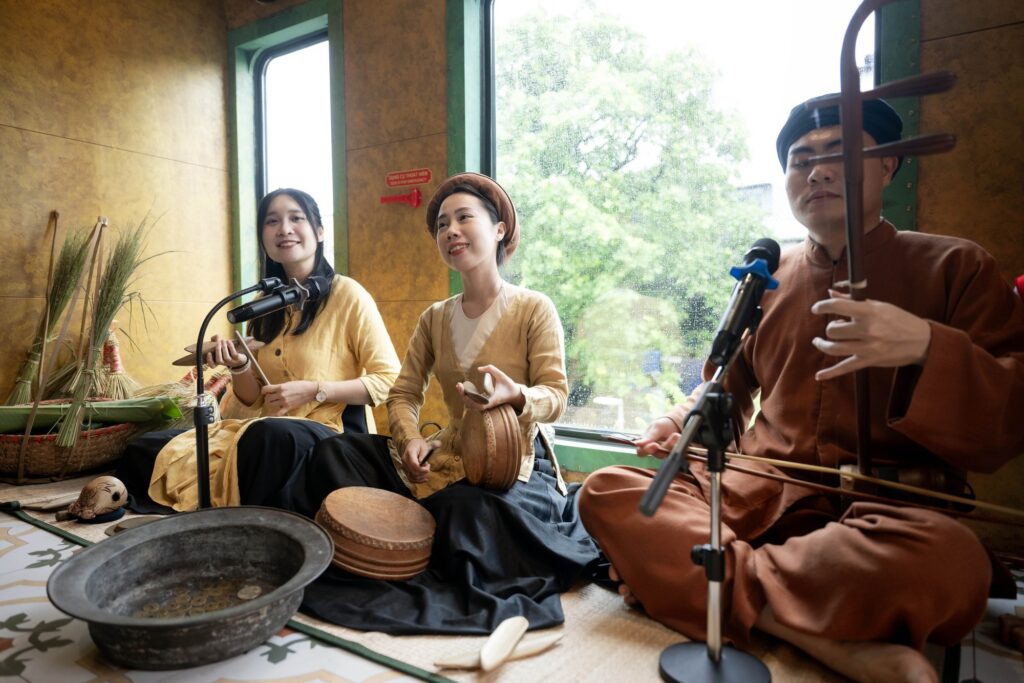 Through their 40-minute trip, passengers will enjoy national traditional music and dance performances such as quan ho (love duet folk singing) ca tru (ceremonial singing), cheo (traditional opera) and xam (blind buskers’ singing).