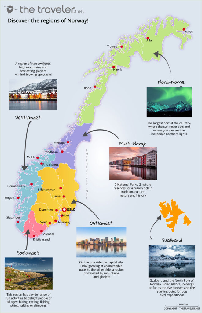 Na Uy là một đất nước rất dài, trải dài từ bắc xuống nam, vì vậy việc di chuyển giữa các điểm du lịch chính có thể mất rất nhiều thời gian, và những địa điểm tuyệt đẹp mà bạn đã từng nghĩ đến có thể nằm khá xa nhau. Hanoi Green Tour xin điểm sơ qua một vài địa điểm chính để du khách Việt tham khảo cho kế hoạch du lịch Na Uy của mình.