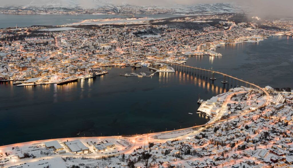 Tromsø : Tận hưởng cảm giác thư giãn tại một thị trấn cảng quốc tế ngập nắng: Nhiều du khách ngạc nhiên trước sự rộng lớn và hiện đại của Tromsø. Bến cảng được phát triển tốt với những tòa nhà hiện đại, và thị trấn trải dài dọc theo hai bên bờ. Để có một chuyến tham quan thú vị, bạn có thể đi du thuyền hoặc bay đến thị trấn 80.000 dân này ở Vòng Bắc Cực.