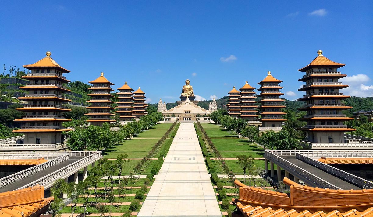 Phật Quang Sơn Tự: Ngôi chùa tọa lạc tại phía Đông Bắc Cao Hùng, Phật Quang Sơn Tự có diện tích lên đến 100ha với hơn 20 điện, lầu, đường, hai bên là những tòa bảo tháp nối tiếp dẫn đến bức tượng phật cao 108m.